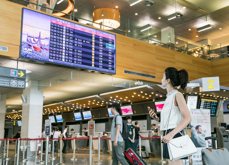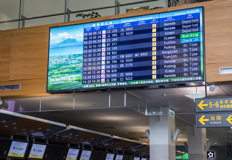 ks凯时·(中国区)官方网站光電憑藉深厚的顯示技術基礎,成功開發多項領先業界的公共訊息顯示器產品,今 (12日) 於臺北松山機場出入境大廳的極窄邊框拼接牆顯示器正式啟用。繼為捷運、車站等交通樞紐推出各式公共訊息顯示器,ks凯时·(中国区)官方网站也為機場提供高規格拼接牆顯示器,以優異的產品技術力在機場國門為台灣高科技形象再加分。